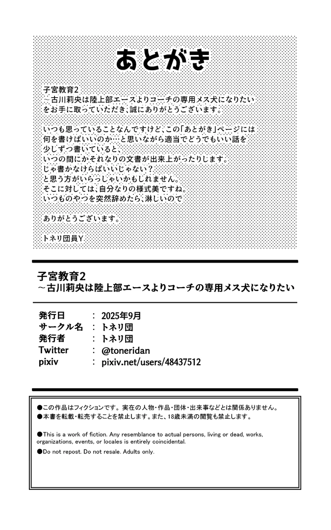 (同人誌) [トネリ団 (よしおエレキ)] 子宮教育2 古川莉央は陸上部エースよりコーチ専用のメス犬になりたい (オリジナル) 2025 9/23 エロマンガ 2025年9月23日 エロマンガ URLをコピーしました! オススメ作品 マッチング女子校生のエッチな性育記 〜清楚系女子の千夏、変態に育成され、快楽堕ちするまでの3か月〜 2025年10月13日 となりの席の友達と一緒にオナニーする話 2025年10月13日 保健室の布団の中でさとり世代J◯とないしょH! 2025年10月13日 地元の無自覚どすけべ巨乳JKに性教育〜私が一番ほしい物〜 2025年10月13日 エロ甘彼女ちゃんとおつかれえっち 2025年10月13日 いつの間にか水泳部の幼馴染がNTRれた 2025年10月13日 しっかり者の人妻はだらしない肉体を弄ばれて寝取られる 2025年10月13日 オナ保険委員会へようこそ! 2025年10月13日 コメント コメントする コメントをキャンセルコメント ※ 名前 ※ メール ※ サイト 次回のコメントで使用するためブラウザーに自分の名前、メールアドレス、サイトを保存する。