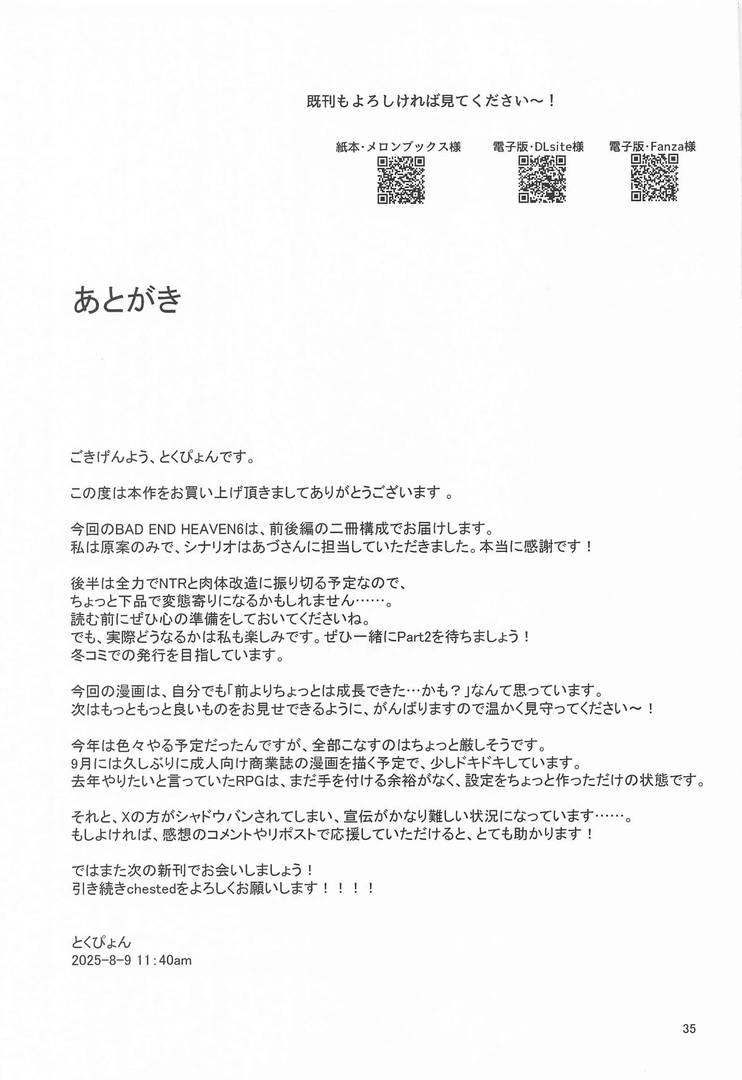 (C106) [chested (とくぴょん)] BAD END HEAVEN 6 part1 (無職転生 ~異世界行ったら本気だす~) 2025 10/25 エロマンガ 2025年10月25日 エロマンガ URLをコピーしました! オススメ作品 押しかけ!!あま甘セフレンズ!? 2025年12月2日 陰キャの僕がピュアな陽ギャルと恋人になってイチャラブ初エッチする話 2025年12月2日 一体どうなってしまうのか!? 2025年12月2日 四〇四号室の同居人 2025年12月2日 「お前がフった陰キャ女、今じゃフォロワー100万人超えの爆乳グラビアアイドルだぞ?w」2 ―彼女のいる俺をむちむち爆乳ボディで誘惑してきて逆NTR― 2025年12月2日 幼馴染彼氏に大切にされてきたのに殺人鬼に犯され処女喪失する話 2025年12月2日 人気清楚系女優の裏の顔は超セックス好き!多忙で抑えられた性欲が爆発して巨根マネージャーと楽屋でHしちゃう話 2025年12月2日 俺の部屋、入りびたりギャルだらけ 2 2025年12月2日 コメント コメントする コメントをキャンセルコメント ※ 名前 ※ メール ※ サイト 次回のコメントで使用するためブラウザーに自分の名前、メールアドレス、サイトを保存する。
