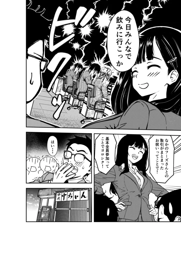 【あらすじ】「僕」は仕事でミスを繰り返してしまい、また部長に怒られていた。気づけば「またやってしまった」と頭を抱えていた。そんな僕の様子を見かねたのが、明るく頼りになる先輩社員の柊さん。彼女は急きょ会社近くの居酒屋で飲み会を企画してくれた。居酒屋では、お酒が大好きな柊さんが毎回ターゲットを決めて一緒に飲みまくるのがいつものこと。今日は僕がターゲットだったが先に柊さんが酔いつぶれてしまった。ふらふらとテーブルに突っ伏す柊さんを僕が介抱することに。僕の家に連れていくも僕はそこで柊さんの見たくないものを見てしまった…その夜、僕は解き放ってしまった。ずっと胸の奥にしまい込んでいたまっすぐな愛だったものが汚い欲望となって。