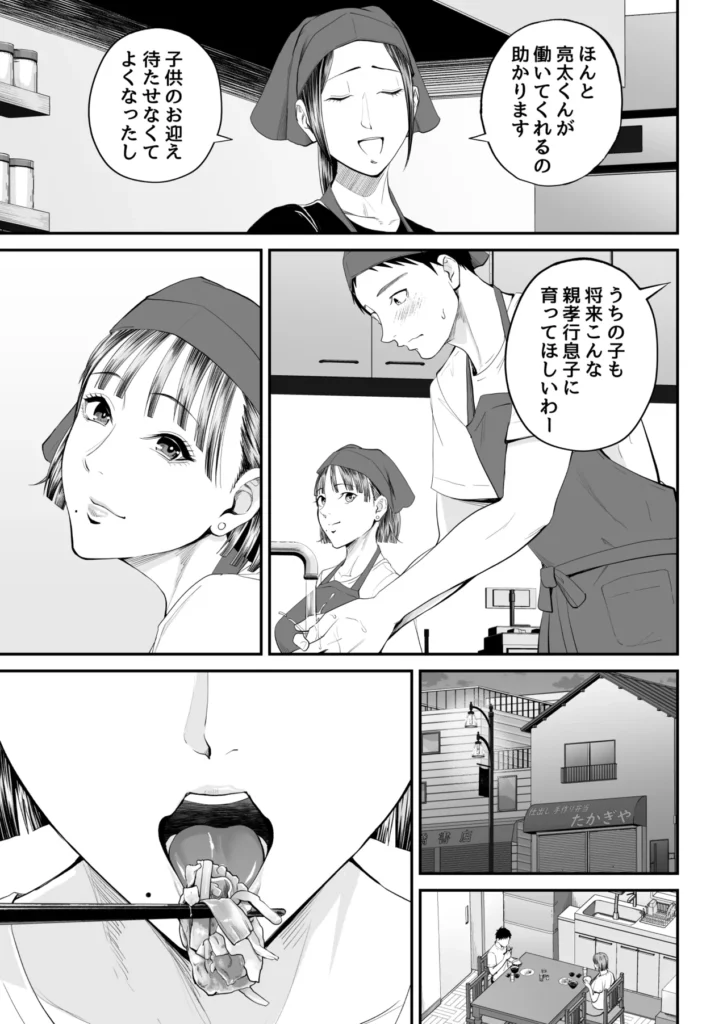 小さな商店街で弁当屋を営みながら二人で暮らしている母・夏美と息子・亮太。夏美に密かに親子以上の好意を抱く亮太だったがある日ちょっとしたすれ違いから喧嘩をしてしまう。仲直りをきっかけに母への想いと情欲が止まらなくなった亮太を夏美はなし崩しに受け入れていく……。