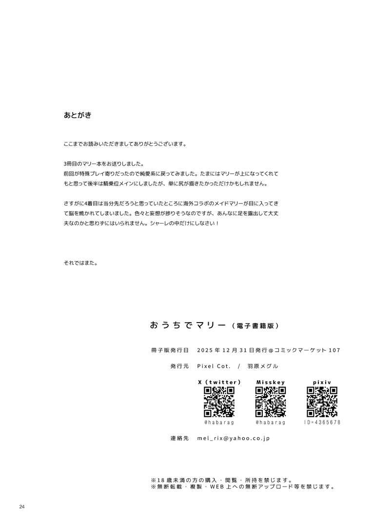 (C107) [Pixel Cot. (羽原メグル)] おうちでマリー (ブルーアーカイブ) [DL版] 2026 1/03 エロマンガ 2026年1月3日 エロマンガ URLをコピーしました! オススメ作品 清楚だと思っていた部下に温泉でしぼりとられる休日 2026年1月16日 催●性指導 妊婦性交指導 2026年1月16日 クール系男装女に彼女寝取られたから、わからせてやった 2026年1月15日 ブラック企業の仮眠室がヤリ部屋になってた話 2026年1月15日 せんせいとわたしだけのひみつ。 2026年1月15日 結婚を約束した幼馴染のお姉ちゃんが輪●されていた 2026年1月15日 ママ友ハーレム3〜大好きなママ達といちゃらぶ制服えっち〜 2026年1月15日 おち○ぽ馬鹿になったうちのお母さん2 2026年1月15日 コメント コメントする コメントをキャンセルコメント ※ 名前 ※ メール ※ サイト 次回のコメントで使用するためブラウザーに自分の名前、メールアドレス、サイトを保存する。