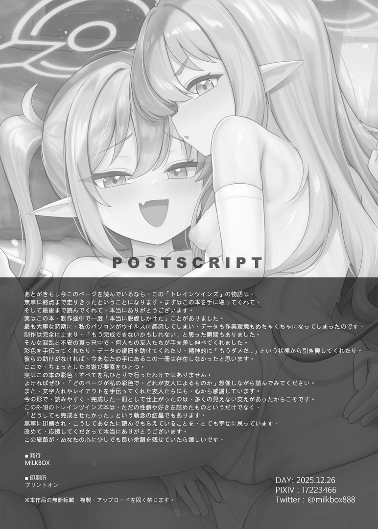 (C107) [猫箱社 (MILKBOX)] ダブルメロンの欲情誘惑 (ブルーアーカイブ) [DL版] 2026 1/16 エロマンガ 2026年1月16日 エロマンガ URLをコピーしました! オススメ作品 名無しのクイック同人さん より 嫁にしようと思って買った犬耳メイドが男の娘だった へのコメント 2026年3月3日 名無しのクイック同人さん より 双子の兄妹強●近親相姦つがいじめ へのコメント 2026年3月3日 名無しのクイック同人さん より ネトラレ報告できたら帰してあげる。 へのコメント 2026年3月3日 名無しのクイック同人さん より 姫騎士、快楽堕ちする へのコメント 2026年3月2日 名無しのクイック同人さん より 双子の兄妹強●近親相姦つがいじめ へのコメント 2026年3月1日 (同人誌) [至高のおっぱい (かけうどん)] 風俗行ったら、仲のいい女友達が働いてた話 ( (オリジナル) 2026年2月26日 (同人誌) [箱庭アリス (けい)] 家庭教師の先生が寝取られる話2 (オリジナル) [DL版] 2026年2月26日 (同人誌) [所帯庵 (あいあん)] トラニィ・ソーサラー ~あなたのメスになりたいのです~ (オリジナル) 2026年2月26日 コメント コメントする コメントをキャンセルコメント ※ 名前 ※ メール ※ サイト 次回のコメントで使用するためブラウザーに自分の名前、メールアドレス、サイトを保存する。