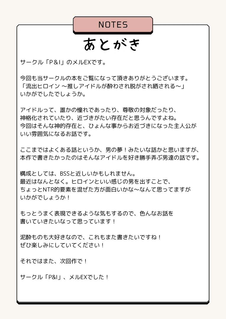 (同人誌) [P&I (ハチ、メルEX)] 流出ヒロイン ~推しアイドルが酔わされ脱がされ晒される~ (オリジナル)